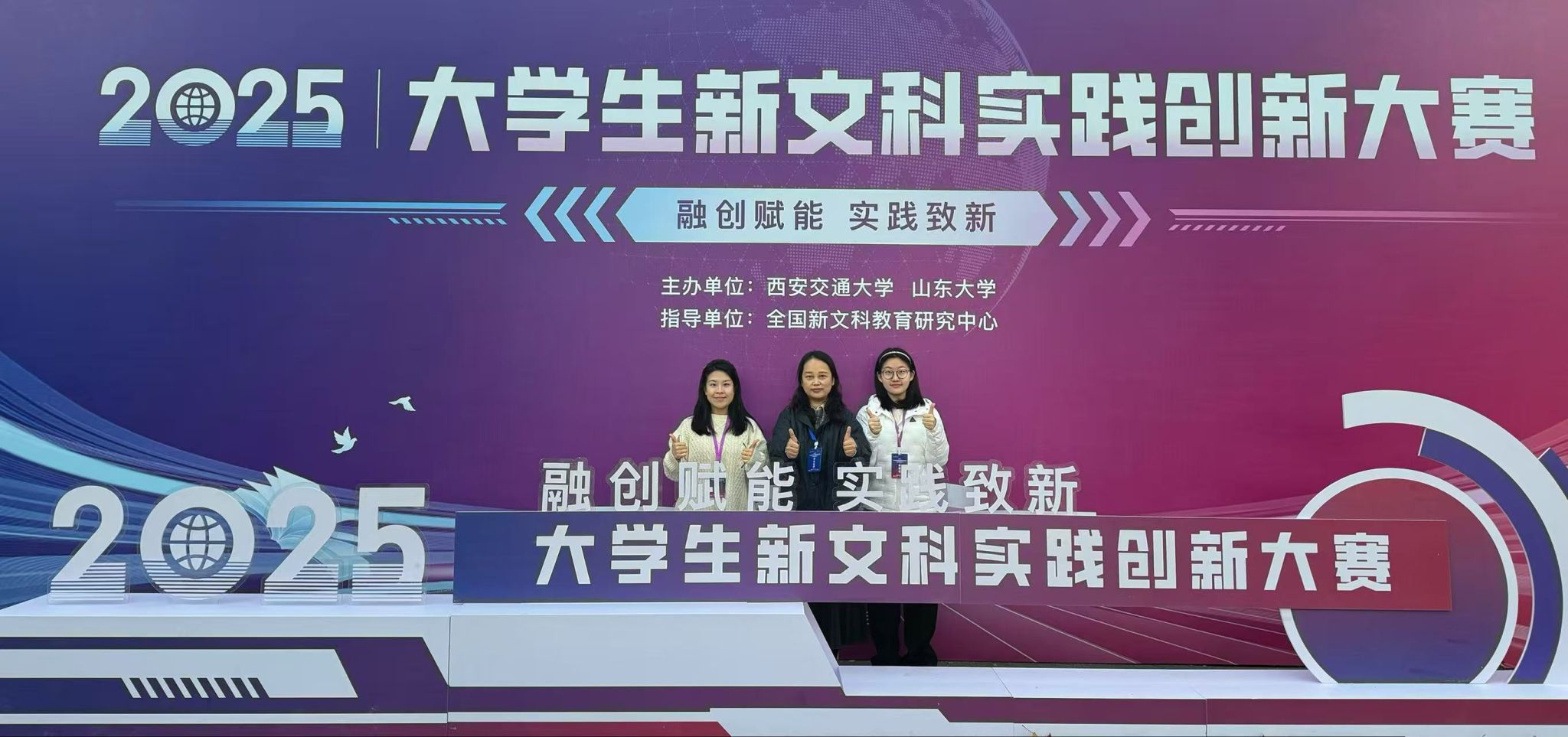 2025-1211月28日至30日,由全国新文科教育研究中心主办、山东大学与西安交通大学联合承办的2025年大学生新文科实践创新大赛全国总决赛在西安交通大学兴庆校区举行。经过激烈角逐,由美术学院教师王慧指导、学生崔鑫焕等完成的《艺媒新声队》项目荣获全国银奖。由教师于猛指导、学生李月娇主持的项目《拓新队》,教师杨丹指导、学生张海丫主持的项目《公共法律服务队》,以及教师于海礁指导、学生李冰洁主持的项目《一剪裁云纳古今》,获得全国铜奖。 作为新文科建设领域极具影响力的...