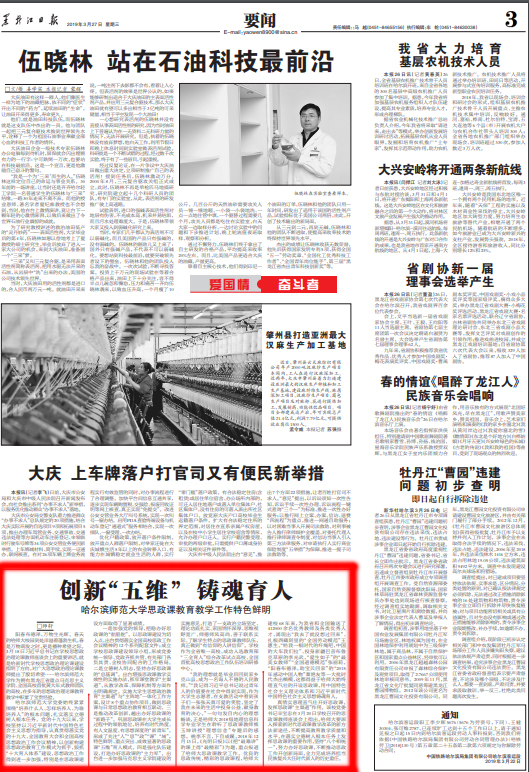 1月22日,东北网以“学习党的‘十九大’,哈尔滨师范大学思政课的特色打开方式”为题,深入报道了我校马克思主义学院思政课教学的鲜明特色。