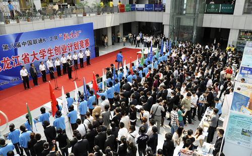 6月12日,由团省委、省教育厅、省科协、省学联联合举办的第八届中国联通K工具“挑战杯”黑龙江省大学生创业计划竞赛决赛开幕式在哈尔滨工程大学隆重举行。