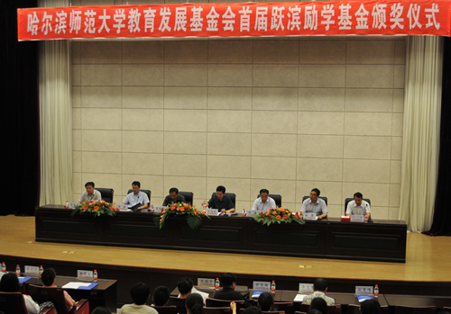 6月20日上午,哈尔滨师范大学教育发展基金会首届“跃滨励学基金”颁奖仪式在科学会堂举行。