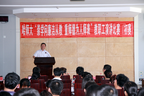6月26日和27日下午,由学校纪检委组织的“崇学问廉洁从教、重师德为人师表”教职工演讲比赛(初赛)在行知楼746会议室举行。