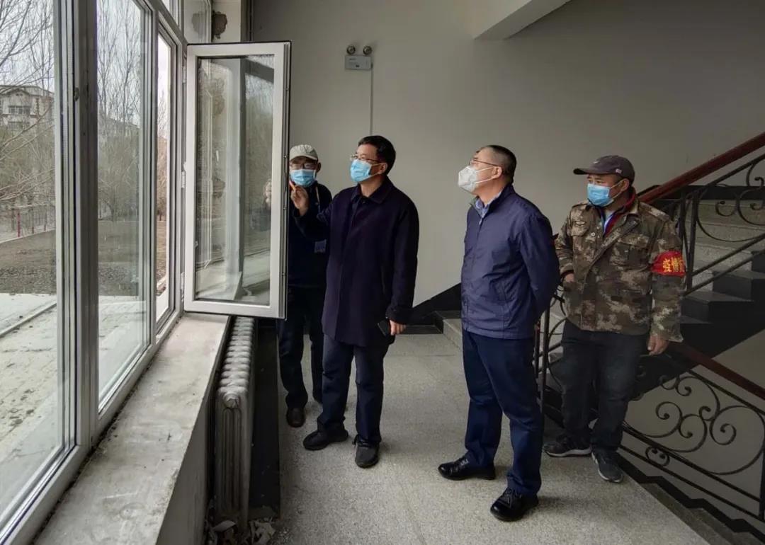 4月21日上午,校长孙立军深入江北校区研究生楼、人文楼等教学楼塑钢窗更换工程施工现场,检查指导疫情防控工作和工程进展情况。