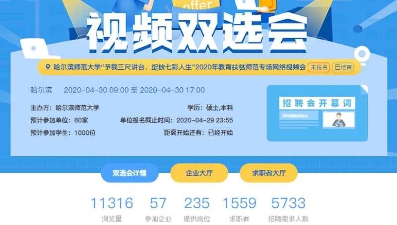 为助力国家脱贫攻坚,落实学校“打赢脱贫攻坚战,再作新贡献”的要求,4月30日8点30分至17点30,我校举办了“予我三尺讲台,绽放七彩人生”2020年教育扶贫师范专场网络视频双选会。