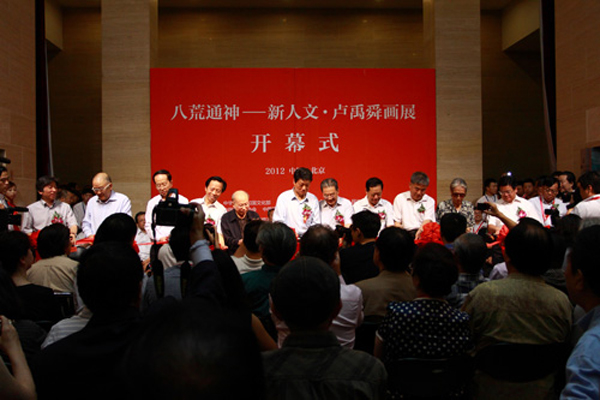 9月9日上午,由文化部、中国文联、黑龙江省人民政府、中国国家画院和哈尔滨师范大学等单位主办的“八荒通神——新人文•卢禹舜”画展在北京中国美术馆开幕。
