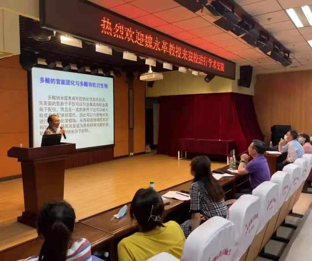 (于卓/文)5月21日,应黑龙江省高校重点实验室的邀请,国家杰出青年科学基金获得者、清华大学魏永革教授在我校科学会堂一楼报告厅作了关于“多酸亚胺化修饰及其应用”的学术报告。