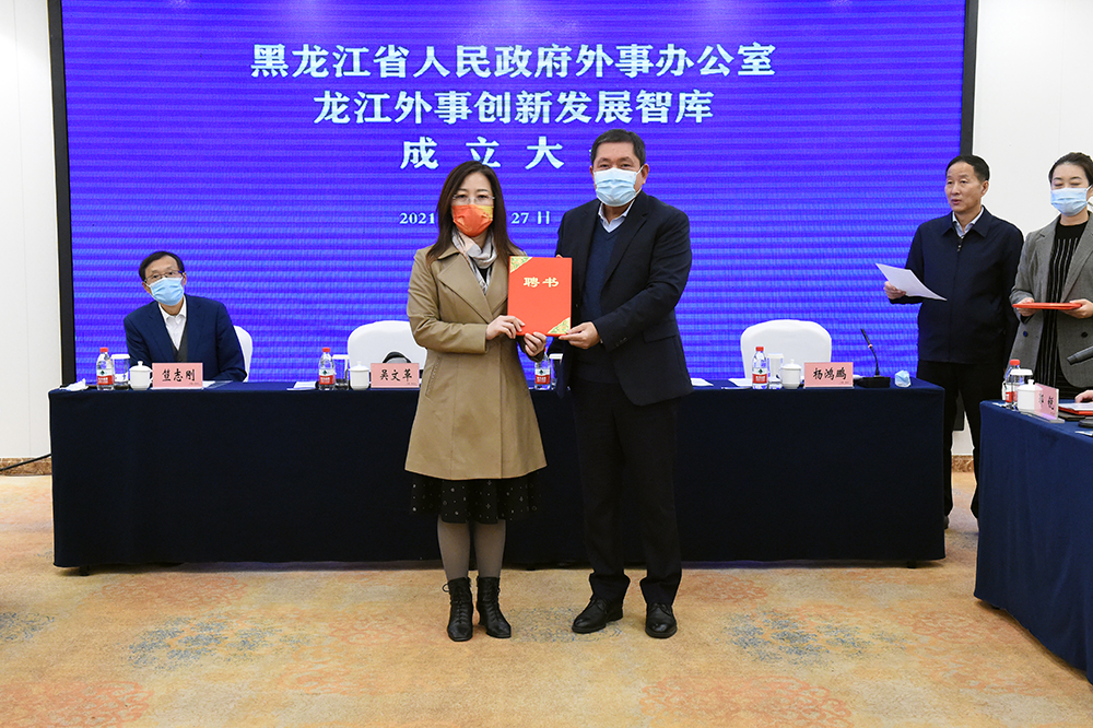 (阿庆喜/文)10月27日,由黑龙江省人民政府外事办公室主办的龙江外事创新发展智库成立大会在哈召开,会议向智库成员单位颁发了聘书。