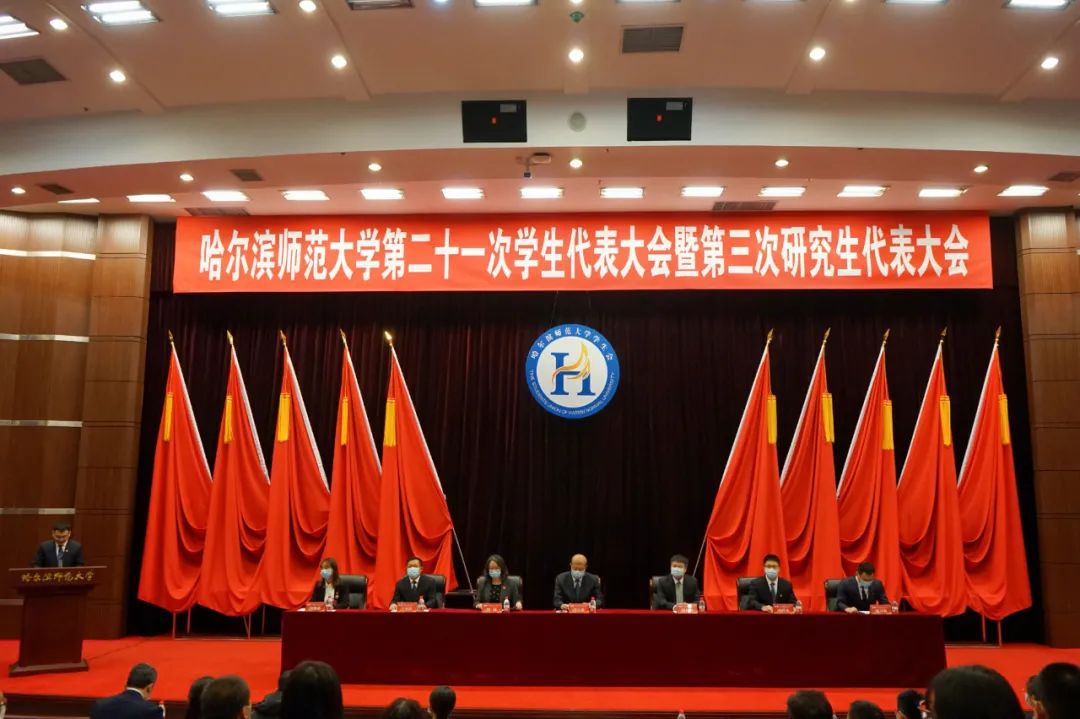 11月28日,哈尔滨师范大学第二十一次学生代表大会暨第三次研究生代表大会在科学会堂召开,团省委书记徐长勇、省学联驻会执行主席杨浩杰及省内部分兄弟高校学生会负责同志出席大会开幕式。