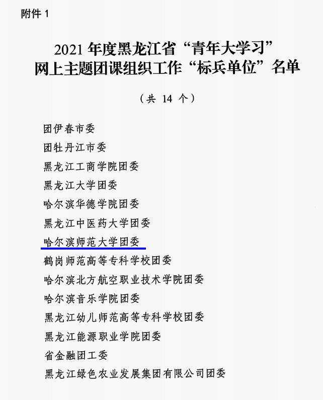 近日,团省委下发了《关于表彰2021年度黑龙江省“青年大学习”网上主题团课组织工作标兵单位、先进单位、先进个人、先进集体的通报》,我校在本次“青年大学习”网上主题团课组织工作评选中斩获多项荣誉。
