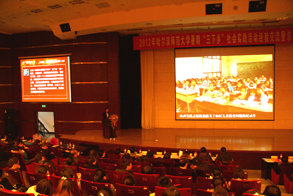 10月24日下午,我校2012年暑期“三下乡”社会实践经验交流暨总结表彰大会在科学会堂隆重举行。
