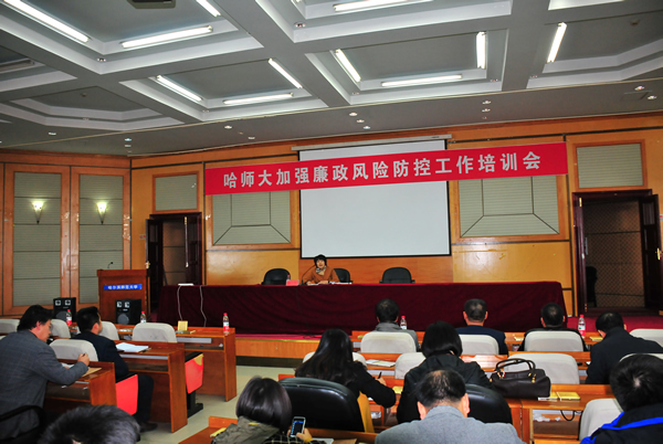 按照《哈尔滨师范大学关于加强廉政风险防控工作实施方案》的总体要求,为进一步明确职责,落实任务,稳步推进廉政风险防控工作,10月30日上午,我校加强廉政风险防控工作培训会在松北校区图书馆三楼报告厅召开。