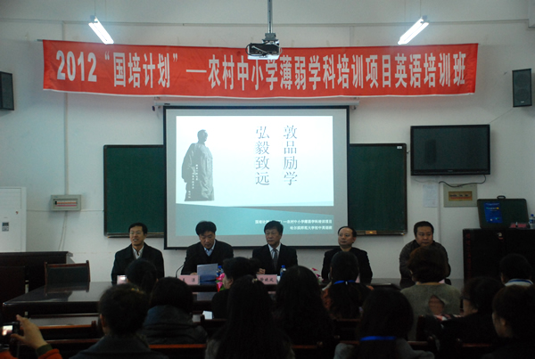 11月6日,“国培计划(2012)——农村中小学薄弱学科培训项目哈尔滨师范大学初中英语培训班”开班仪式在西语学院多功能会议室隆重举行,来自全省各个地区的28名初中英语骨干教师参加了开班仪式。