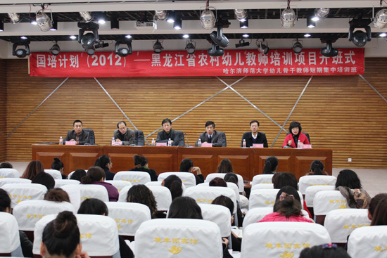 11月1日上午,由我校教育科学学院承办的“国培计划(2012)”——黑龙江省农村幼儿园教师培训项目(幼儿园骨干教师短期集中培训班)开班式在梦溪宾馆二楼会议厅隆重举行。