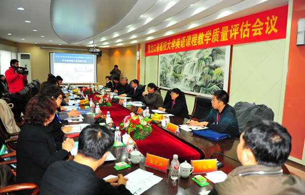 图1 评估汇报会现场 11月14日上午,我校《大学英语》课程教学质量评估工作汇报会在梦溪宾馆八楼会议室召开。