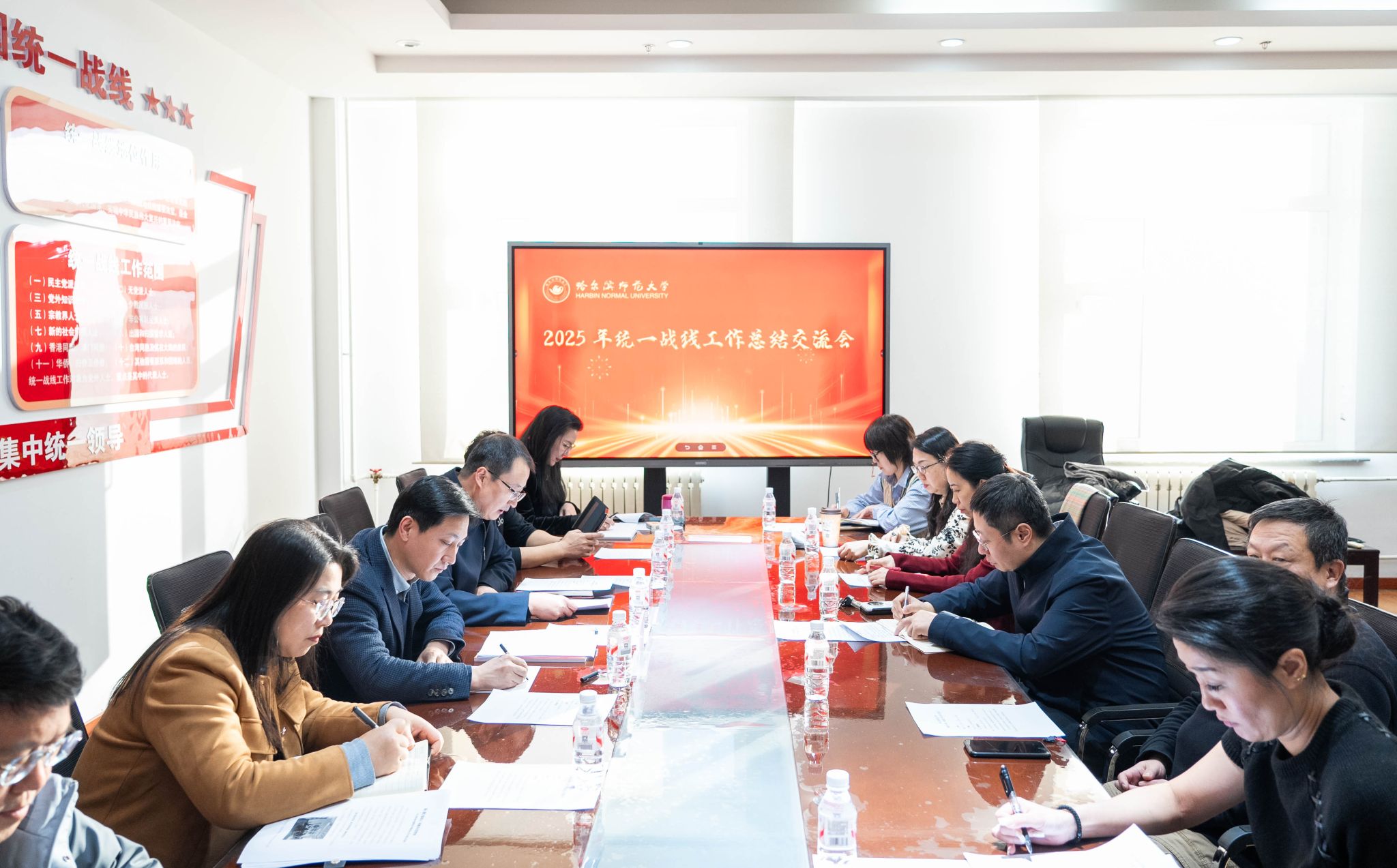 12月29日,我校在行知楼“统战之家”召开2025年统一战线工作总结交流会。校党委副书记王辉,党委常委、统战部部长宿建出席会议。学校各民主党派负责人、政协委员、无党派人士和欧美同学会会员代表等参加会议。会议由宿建主持。会上,民革哈师大支部副主委赵儒袊、民盟哈师大委员会主委杨超、民进哈师大总支主委王晓玲、农工党哈师大支部主委刘臣、九三学社哈师大委员会主委周嘉等先后发言,围绕各自组织在思想政治建设、社会服务活动、参政议政等方面取得的突出成绩进行汇报交流。省政协委员周嘉结合履职实践,...