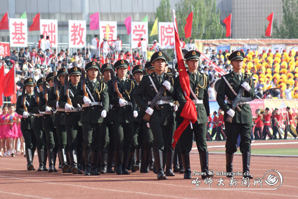 图1 国旗护卫队伍 图2 花束队伍 图3 刀旗队伍 图4 鼓乐队伍 图5 裁判员队伍 图6 哈师大附中队伍 图7 传媒学院队伍 图8 地理科学学院队伍 图9 东语学院队伍 图10 管理学院队伍 图11 国际文化交流学院队伍 ...