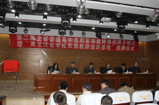 11月12日,第二届全省普通高中兼职军事教师培训班开班式暨“黑龙江省军事教师培训基地”挂牌仪式在我校梦溪宾馆会议室召开。