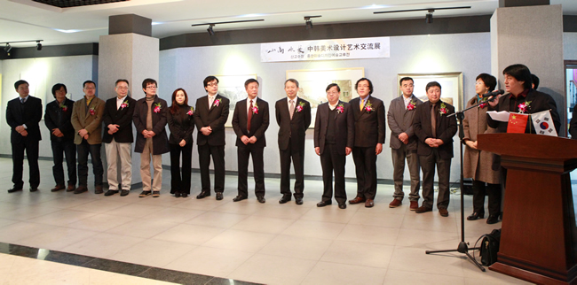 11月13日下午,“山高水长中国哈尔滨师范大学美术学院 韩国大真大学艺术学院美术设计艺术交流展”在江南校区美术馆开幕。