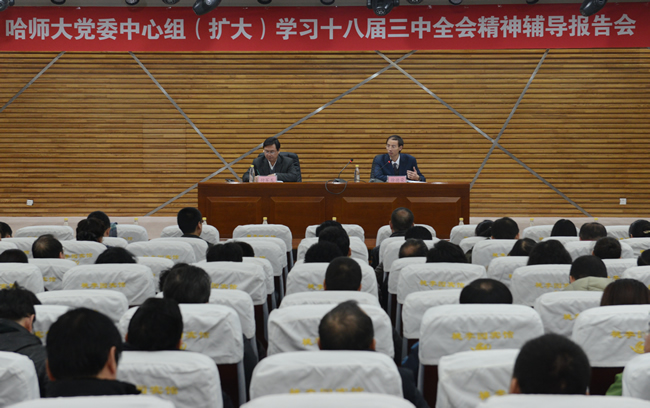 为了学习宣传贯彻十八届三中全会精神,进一步提高全校师生员工对全面深化改革重大意义的认识,切实增强全面深化改革的自觉性、坚定性,12月24日上午,校党委中心组(扩大)学习十八届三中全会精神辅导报告会在梦溪宾...