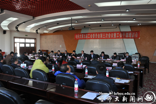 11月25日,在松北校区图书馆一楼报告厅举行了学校第九届工会委员会第三次会议暨工会干部培训会议。