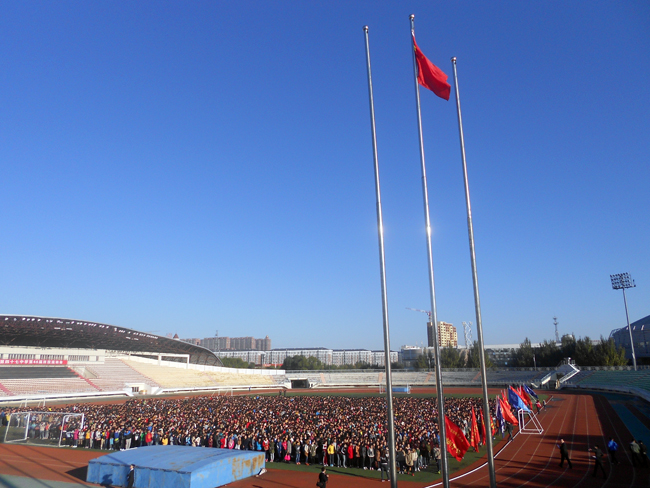 图 升旗仪式现场 (刘博/文)为培育和践行社会主义核心价值观,弘扬爱国主义精神,9月30日7:00,我校在松北校区体育场举行升旗仪式,热烈庆祝中华人民共和国成立65周年和首个烈士纪念日。