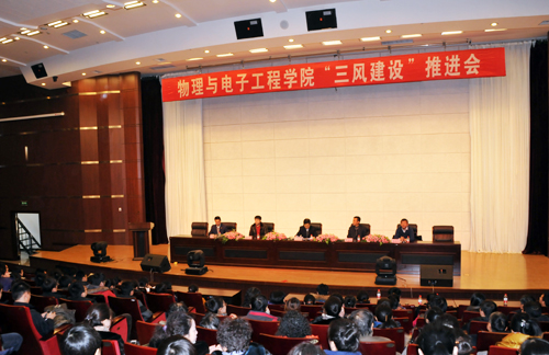12月19日下午,物理与电子工程学院在松北校区科学会堂举办了“三风建设”推进会,党委副书记王为正,教务处、团委等部门领导出席会议。