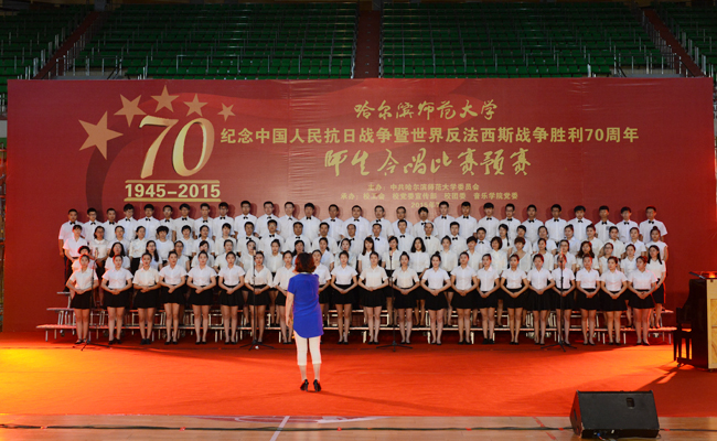 (邓铁男/文)7月1日下午,我校纪念中国人民抗日战争暨世界反法西斯战争胜利70周年合唱比赛预赛在松北校区体育馆隆重举行。