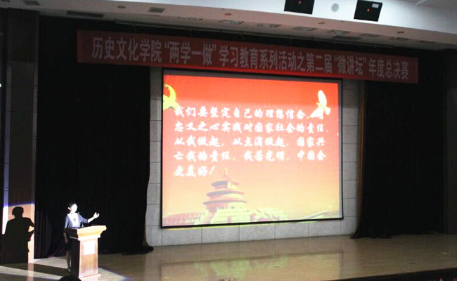 (张丹/文)6月22日,历史文化学院“两学一做”学习教育系列活动之第二届“微讲坛”年度总决赛在科学会堂举行。