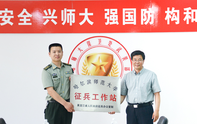 (宋庆春/文)7月8日下午,“哈尔滨师范大学征兵工作站”授牌、揭牌仪式在我校保卫处武装部举行。