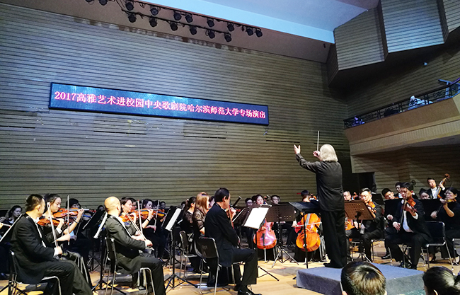 (刘强/文)6月2日,由教育部、文化部、财政部主办,黑龙江省教育厅承办的“2017年高雅艺术进校园”中央歌剧院哈尔滨师范大学专场演出在我校江南校区音乐厅举行。