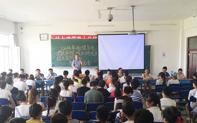 (李明/文)为了进一步提高学院2018届学生的考研热情,明确考研目标,掌握相关考研技巧,了解更多考研信息,树立正确的考研观念,7月6日上午,物理与电子工程学院在崇师楼召开了2018年硕士研究生招生宣传暨导师见面会。