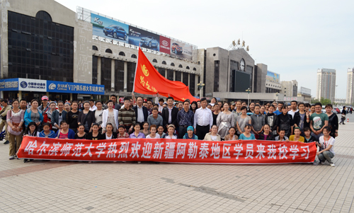图 学校领导迎接新疆阿勒泰地区培训学员 5月12日下午,来我校培训的70名新疆阿勒泰地区学员乘火车抵达哈尔滨。