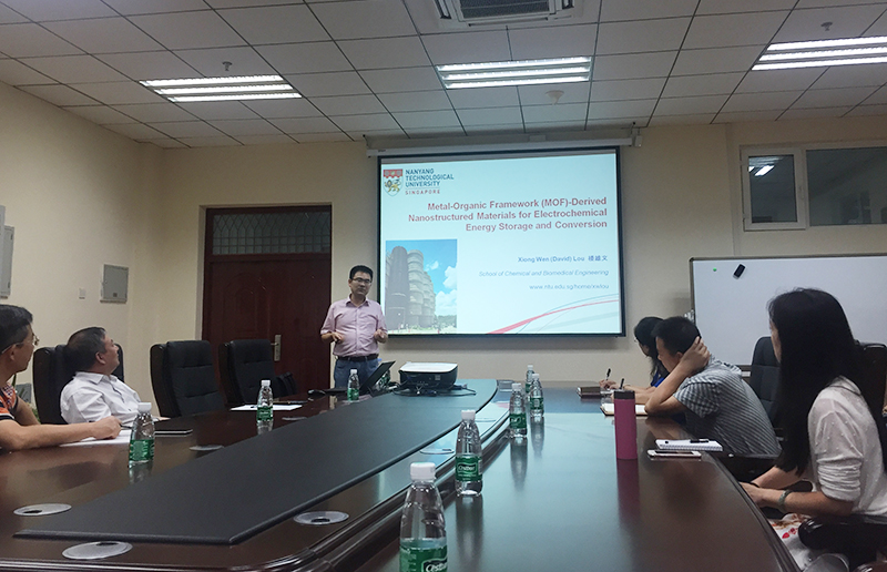 (付淑芳/文)8月24日,新加坡南洋理工大学楼雄文教授应物理与电子工程学院及光电带隙材料教育部重点实验室邀请,在行知楼B112室(重点实验室学术报告厅)作了题为“Metal-organic-framework-derived functional nan...