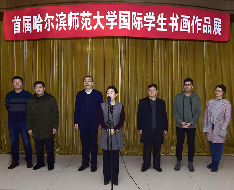 (范佳佳/文)为更好地在国际学生中弘扬中国传统文化,充分发挥学校在绘画、书法等专业方面的优势,由国际教育学院主办的首届哈尔滨师范大学国际学生书画作品展于12月12日下午在和平邨宾馆开幕。