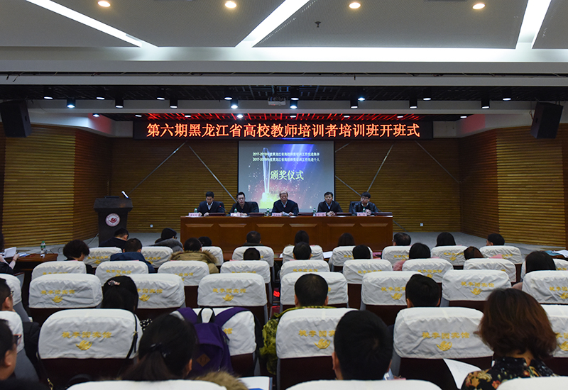1月7日上午,第六期黑龙江省高校教师培训者培训班开班式暨2017-2018年度黑龙江省高校师资培训工作先进集体和先进个人表彰会在我校梦溪宾馆举行。