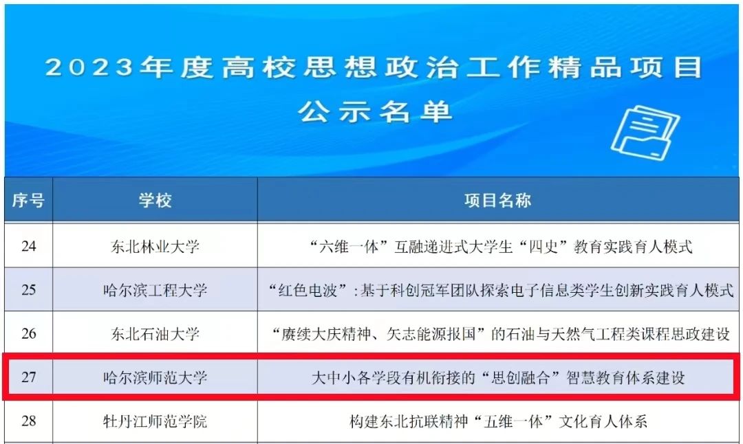 学校党委始终坚持立德树人根本任务,着力思政引领和教师教育办学特色,自实施“大中小各学段有机衔接的‘思创融合’智慧教育体系建设”项目以来,得到了省教育厅相关部门和我校各职能部门、各学院给予的大力支持。作为中国国际“互联网+”大学生创新创业大赛黑龙江省赛区“萌芽赛道组委会”常设单位,连续承办了四届“萌芽赛道”赛事,组织全省高中生广泛参与,成绩斐然。“五色五育”大中小系列研学活动被学习强国、中国教育在线、央视新闻客户端、中国青年报等多家媒体多次报道。