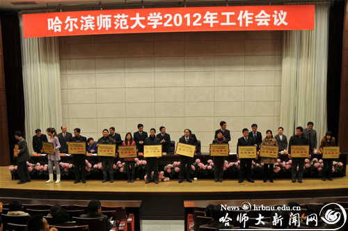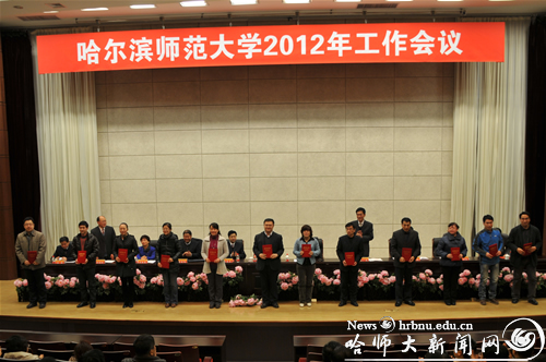 首先,党委副书记王为正宣读了《哈尔滨师范大学关于表彰2009—2011年度先进集体、先进工作者的决定》。随后,学校领导为获得2009—2011年度先进集体、先进工作者的代表颁发了奖牌和荣誉证书。