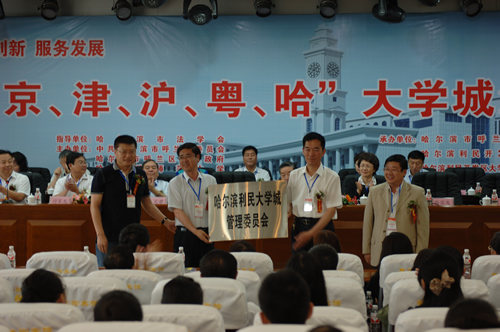 6月17日上午,京、津、沪、粤、哈大学城法治论坛在我校召开。来自京、津、沪、粤、哈的法律研究专家汇聚一堂,围绕地校合作、共同发展的一系列重点、热点问题展开高层次的对话和探讨。
