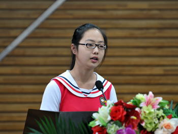 图 报告团成员佳木斯市第十九中学丽莉班学生张佳岩作报告