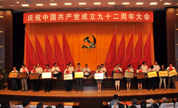 6月28日,我校庆祝建党92周年大会在松北校区科学会堂隆重召开,学校党政领导出席大会,全校副处级以上干部,机关和附属单位全体同志,全体辅导员,受表彰的先进集体、先进党支部代表,全体优秀共产党员、优秀党务工作者、先进工作者,各民主党派负责人参加大会。会议由校长王选章主持。