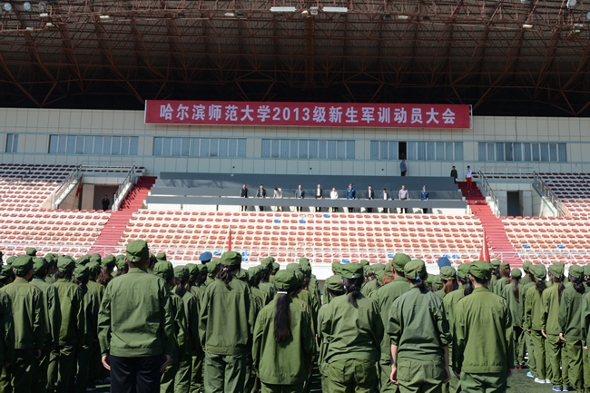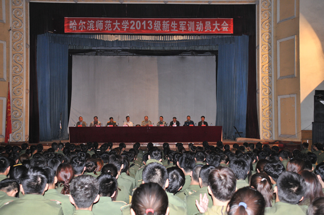 同日上午,江南校区、江北校区分别举行了2013级新生军训动员大会。大会宣读了《哈尔滨师范大学2013级学生军训方案》,对军训提出了要求,为军训师授旗。