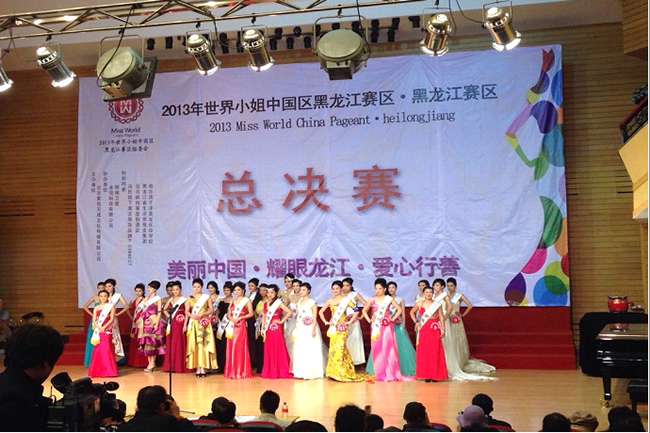 10月11日下午,2013年世界小姐中国区黑龙江赛区总决赛在我校江南校区音乐厅拉开帷幕,来自黑龙江省各地区的30位佳丽分别进行了晚礼服、青春活力装、泳装三部分的展示后,晋级16位佳丽进行了个人才艺展示,决出了2013年世界小姐中国区黑龙江赛区冠军、季军、亚军及黑龙江赛区十佳。