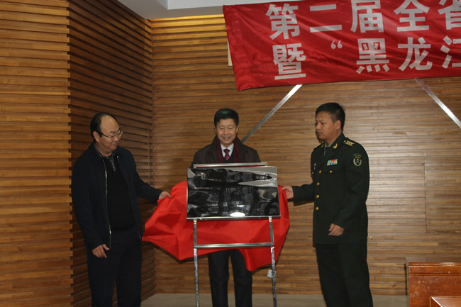 最后,王为正、梁秀海、赵汝亮共同为“黑龙江省军事教师培训基地”揭牌。