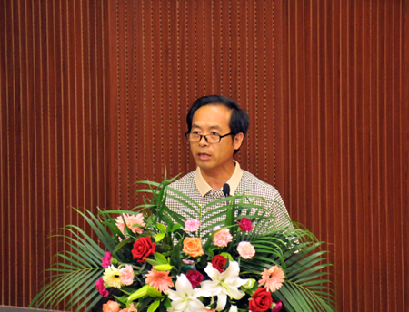 图 教师代表、龙江学者特聘教授、我校物理与电子工程学院院长、博士生导师张喜田在仪式上发言