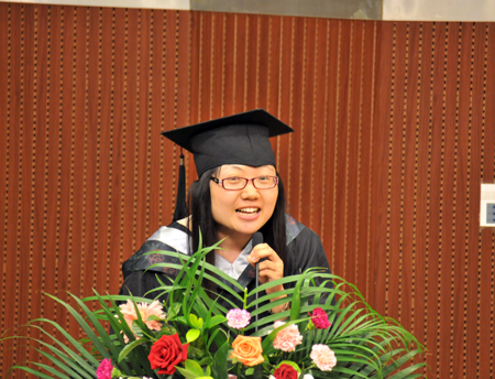 图 本科生毕业生代表李雪在仪式上发言