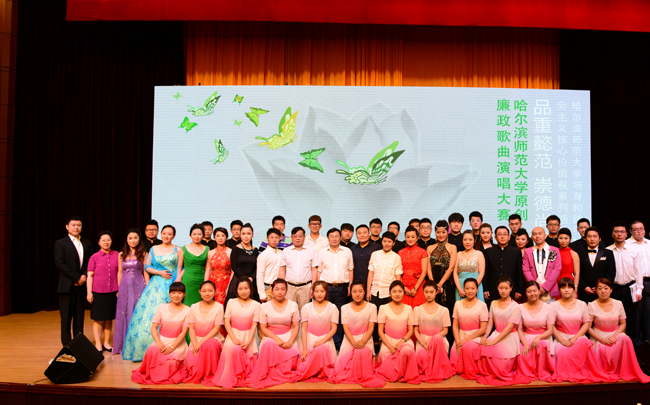 (倪金荣/文)为深入贯彻落实党的十八大和十八届三中全会精神,积极培育和践行社会主义核心价值观,大力营造崇廉尚洁的校园廉政文化氛围,根据《中共哈尔滨师范大学委员会关于培育和践行社会主义核心价值观的实施意见》精神,按照《哈尔滨师范大学廉政文化进校园示范点建设工作方案》要求,6月27日下午,哈尔滨师范大学“品重懿范 崇德尚廉”原创廉政歌曲演唱大赛决赛隆重举行。