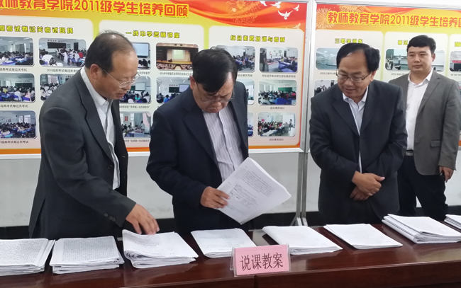 (张静/文)为了增强学生的从师技能,促进各学科及学生之间的交流,按照教师教育学院2011级学生教育实习规划,教师教育学院从9月1日开始至今进行了为期两周的实习前校内训练,训练包括模拟授课、说课训练、综合素质验收、一线中学名师讲座、特级教师讲坛及高考试卷过关考试等内容,推动同学们从师技能的提高。在学生就业指导处、教务处和基础教育研究中心的指导下,经过高强度训练,9月10日,教师教育学院举行了内训交流活动,活动分为讲课活动、说课活动、综合素质验收和学生实训材料展等内容,学院领导、教师和2011级学生参加活动。