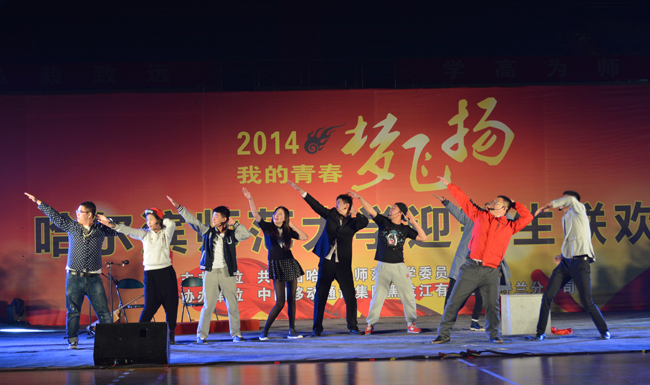 本次迎新生联欢会以“我的青春梦飞扬”为主题,以青春励志为主线,节目形式丰富多彩。联欢会在热情洋溢的开场舞《欢天喜地秧歌情》下盛装开幕,曼妙的舞姿、悦动的旋律,瞬间点燃了观众的热情。随后,一首大气豪迈的男声独唱《中华情》,把“恢弘中国梦,浓浓中华情”展现给现场的每一位观众。旋律悠扬的歌曲,感人至深的原创诗朗诵,幽默诙谐的话剧,激情动感的韵律操,技艺精湛的武术等精彩表演使整场联欢会高潮迭起。一首《共青团版—小苹果》展现了我校团员青年积极向上的精神风貌和良好的文化艺术修养,使现场气氛迅速升温。最后,联欢会在一首原创歌曲《情颂华章》下落下帷幕,全体演职人员共同走上舞台,用歌声表达对新同学秉承“敦品励学,弘毅致远”的校训载誉前行的殷切期望。