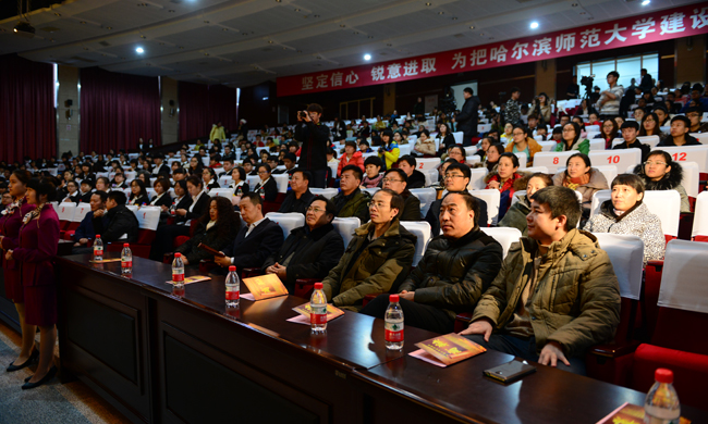 (刘博/文)为学习贯彻党的十八届四中全会精神,由校团委主办、法学院承办的“弘扬法治精神,建设法治中国”我校迎接首个国家宪法日大会于12月4日在科学会堂隆重举行。党委书记,党委宣传部、学工处、团委等相关部门负责人与600余名学生代表参加大会。大会首先播放了纪录片《中国宪法的发展历程》。随后,校党委书记为“哈尔滨师范大学法律协会”授牌,以推动我校“法治校园”建设进程。法学院党总支书记、院长苗正达教授为师生解读了“国家宪法日”的深刻含义。