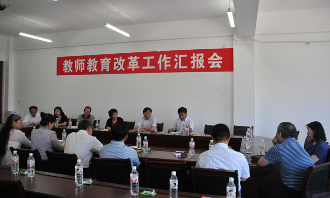 (李小雨/文)6月19日上午,我校在新教学楼318会议室召开了教师教育改革工作汇报会和座谈会。校长王选章,党委常委、副校长徐晓风,副校长臧淑英出席了会议。学校相关部处负责人以及有关学院的院长、教学副院长参加了会议。