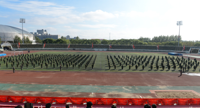 (张占武/文)9月24日上午,我校分别在江北校区、江南校区隆重召开2015级学生军训会操表演暨总结表彰大会。